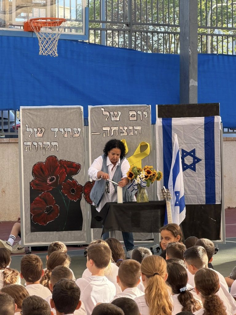 עמדנו יחד תלמידים קהילה וצוות בית הספר – לזכור, לכבד ולהוקיר את גבורת הלוחמים והאזרחים שגילו כוח, אומץ ולב ענק.