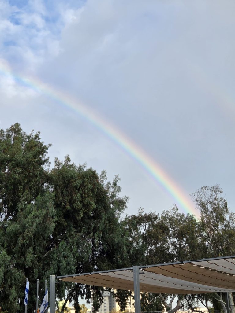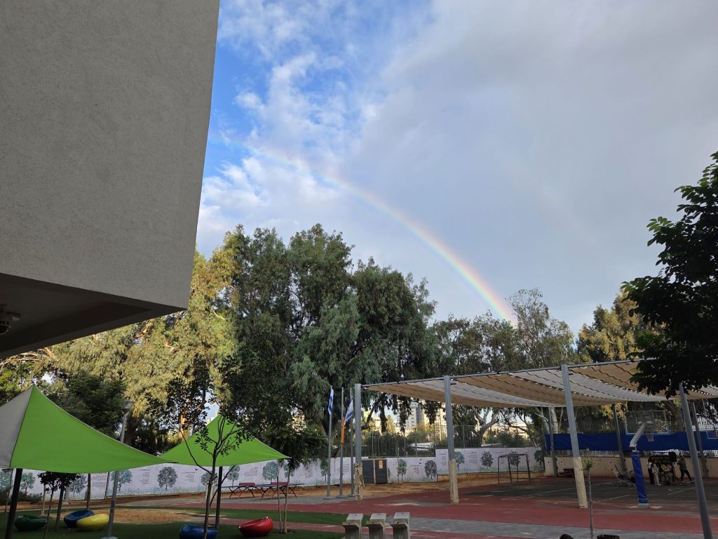 הבוקר בבית החינוך "נרקיסים" נפתח בצבעוניות ובאור מיוחד. עוד לפני שהתכנסנו, זכינו לראות קשת בענן יפהפייה שקישטה את השמיים והייתה פתיח נהדר ליום חגיגי במיוחד.