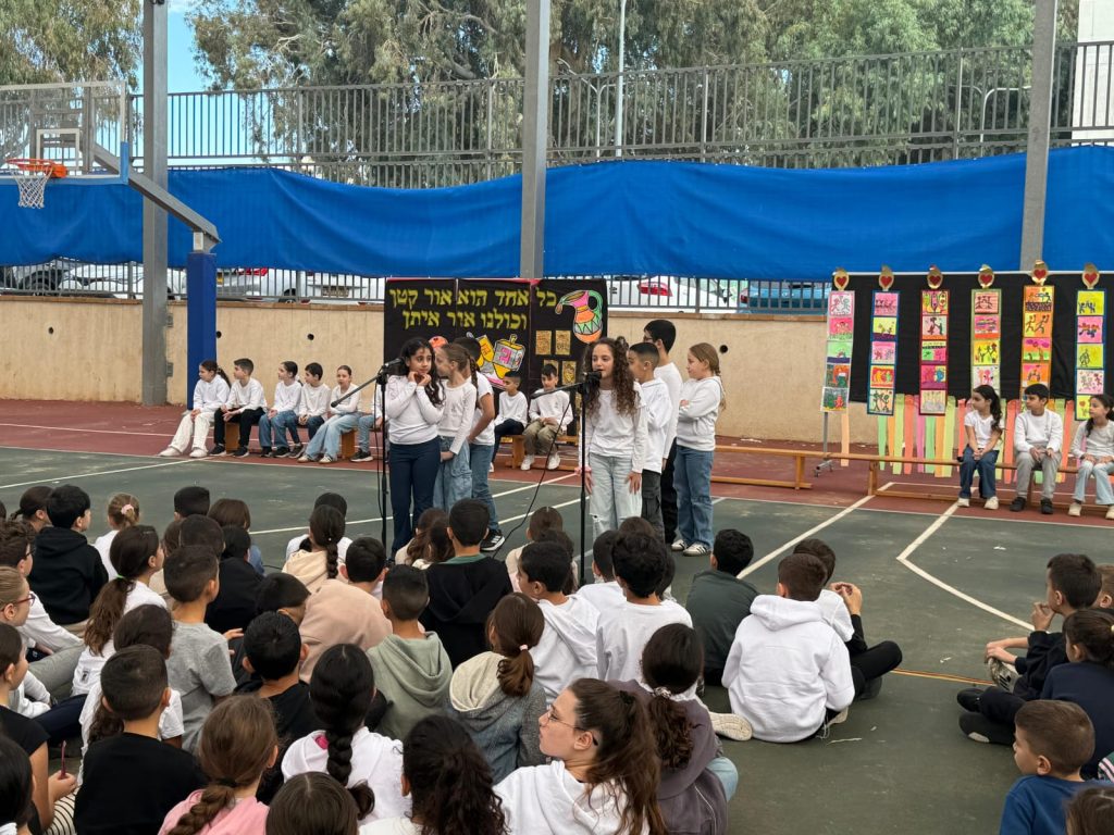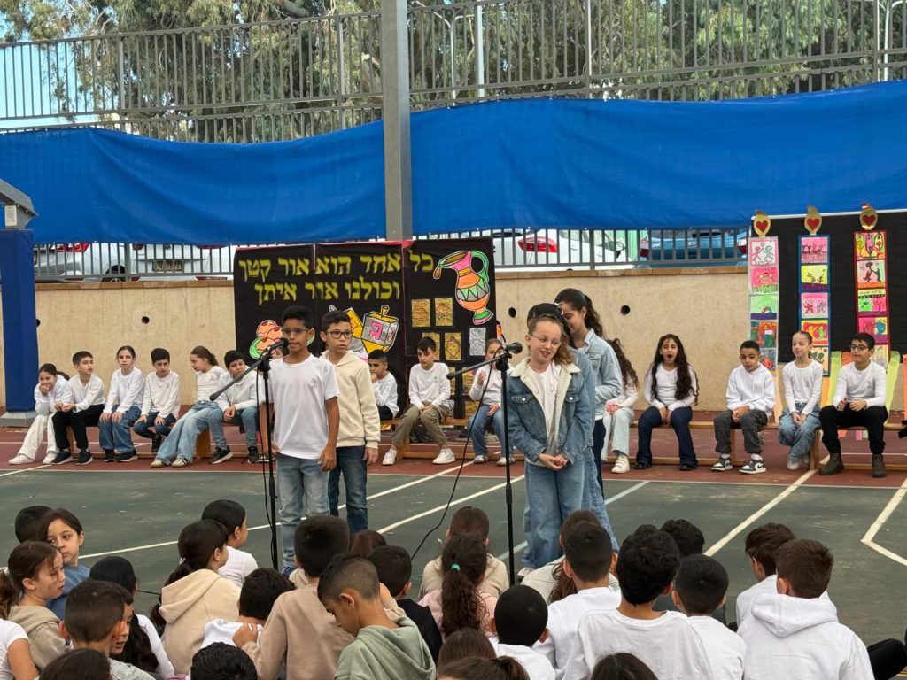 לאחר מכן, פתחנו את הבוקר בטקס חנוכה מרגש ומרהיב, שהובילו תלמידי כיתה ד'1 יחד עם המחנכת ליאור. ניכר היה שהתלמידים והמחנכת עמלו קשה והשקיעו שעות רבות של חזרות והכנה. התוצאה הייתה טקס מדהים, מקצועי וסוחף שהכניס את כולנו לאווירת החג.