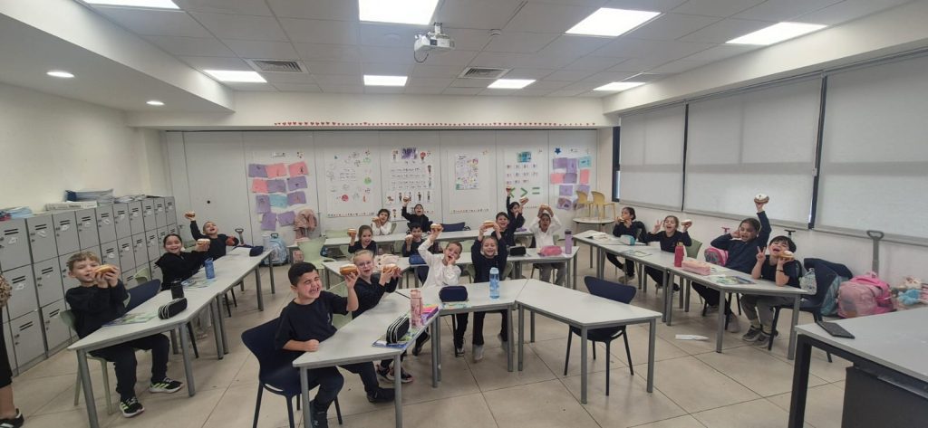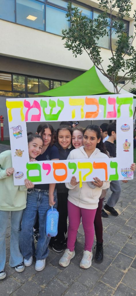 החגיגה גם המשיכה אל החצר בהפסקה פעילה סוחפת, שמחה ומלאת אנרגיות לכבוד החג. לאחר מכן, התלמידים נכנסו לכיתות ונהנו מחלוקת סופגניות מתוקות וחמות. האווירה בבית הספר הייתה של חגיגה אמיתית ומגבשת.
